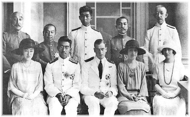 後列左から 梨本宮守正王 久邇宮邦彦王 高松宮 閑院宮載仁王 伏見宮博恭王前列左から 久邇宮俔子妃 昭和天皇 グロースター公 東伏見宮周子妃 梨本宮伊都子妃 1929年(昭和4)イギリス国王ジョージ5世の代理として来日したグロースター公を囲んで。グロスター公は、当時の英国国王ジョージ5世の第3王子、