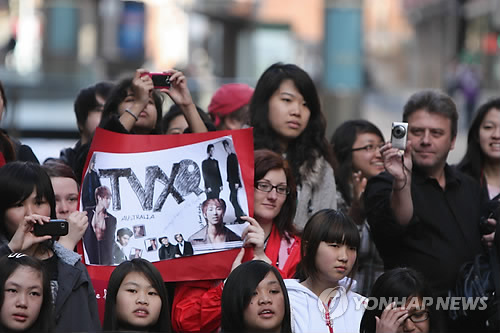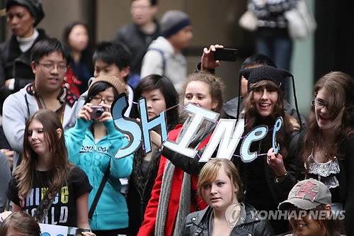 23日、オーストラリア・シドニー中心のマーティンプレイスに集まった数百人余りのオーストラリアの若者が、韓国歌謡を歌って踊るなどのK-POPブームを起こした。