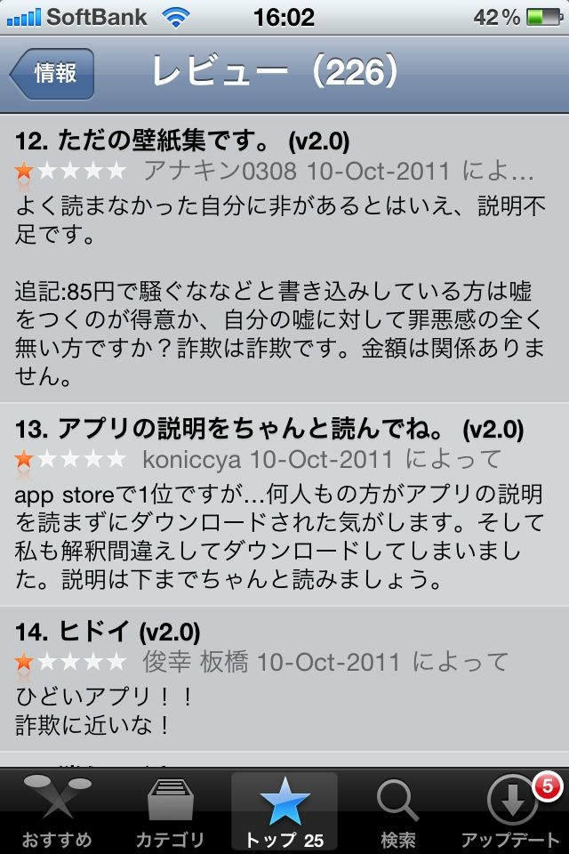 無料アプリでも酷評するくせにwwwwww