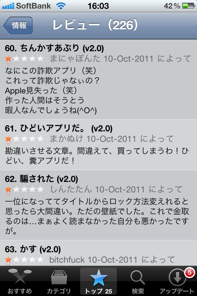 皮肉にもこのアプリは現在AppStoreで2位となっている。