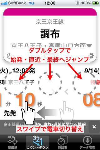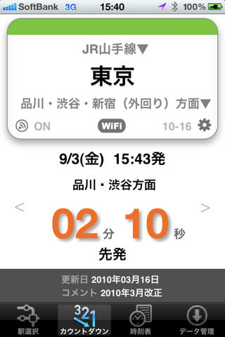 最寄り駅から自分が乗りたい方面の直近の電車が後何分で発車するか分る。