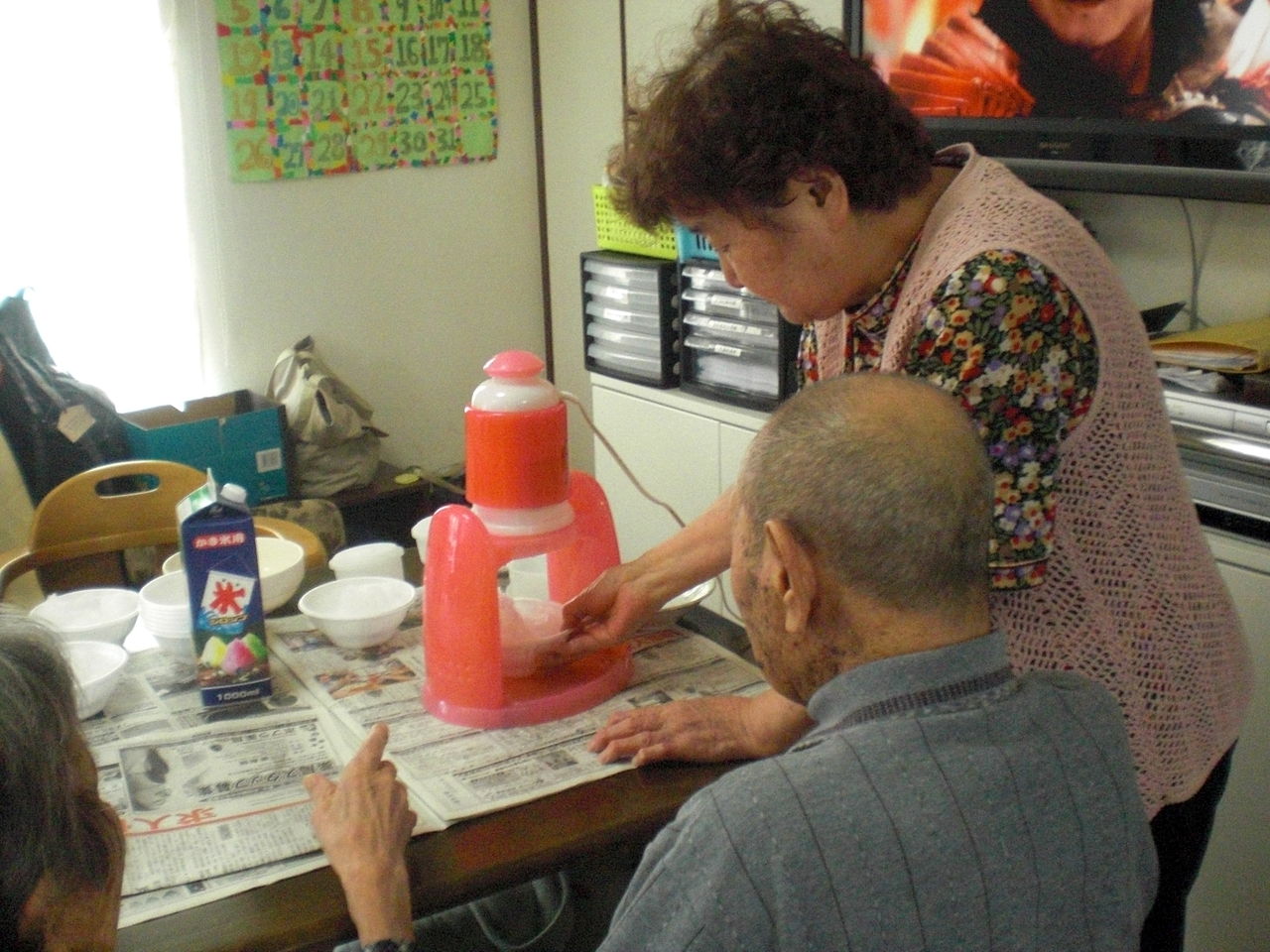 』っと電動かき氷機にじいちゃんばあちゃん感動