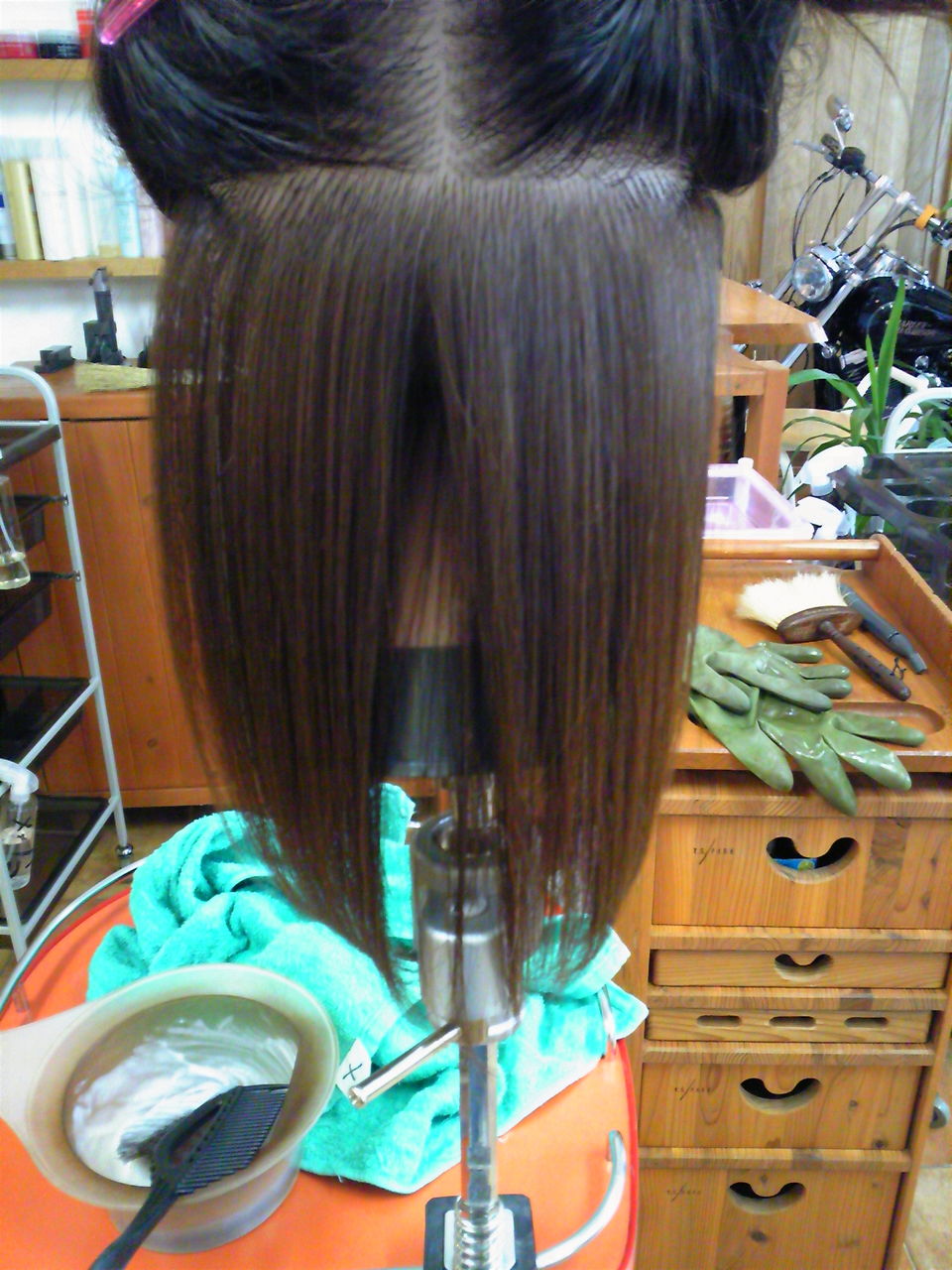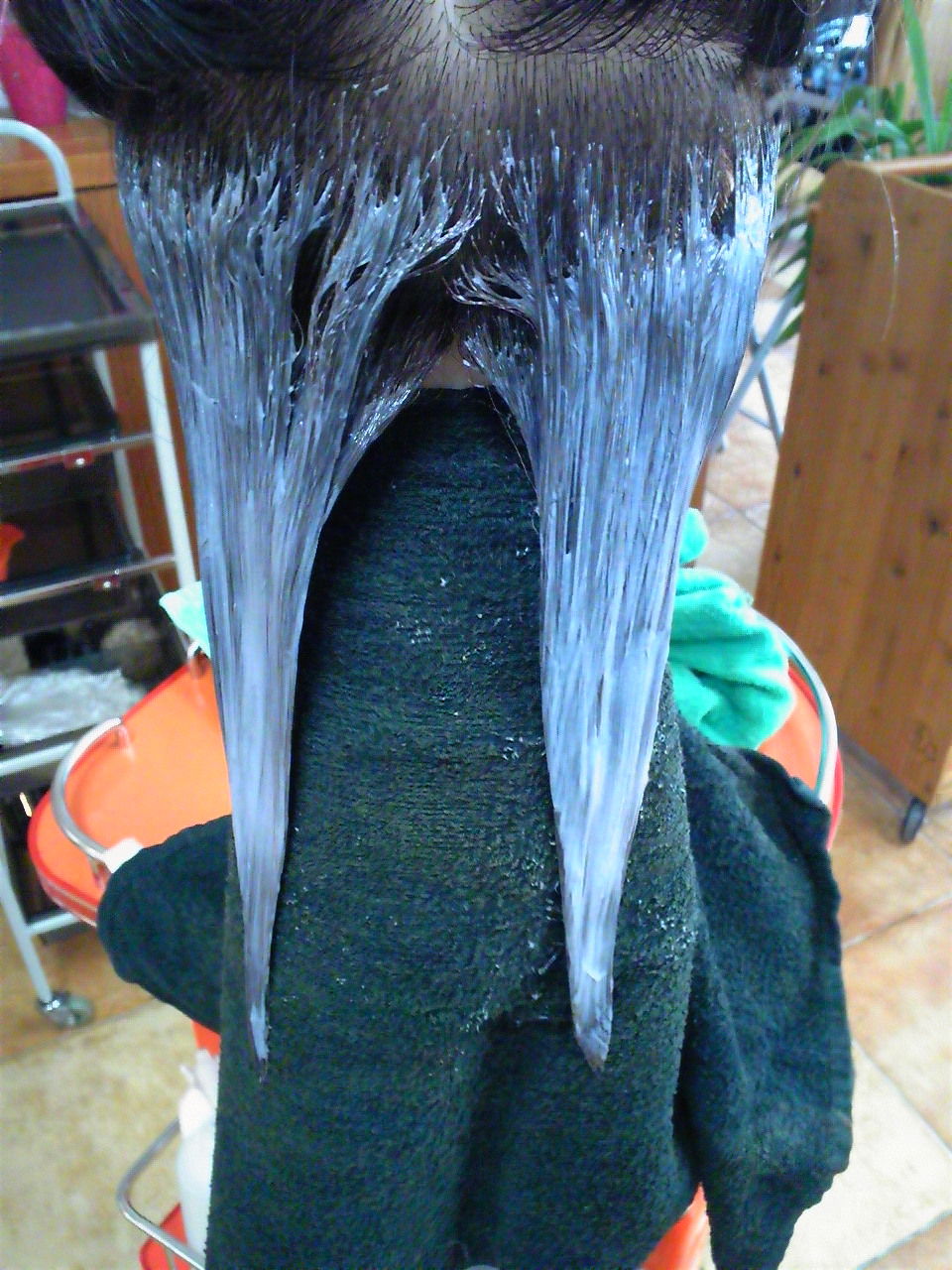 毛先があまいので再塗布後ラップしてドライヤーであっためた 全部で30分ぐらいだね