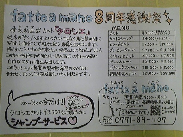 京丹波町の美容室/美容院 fatto a mano