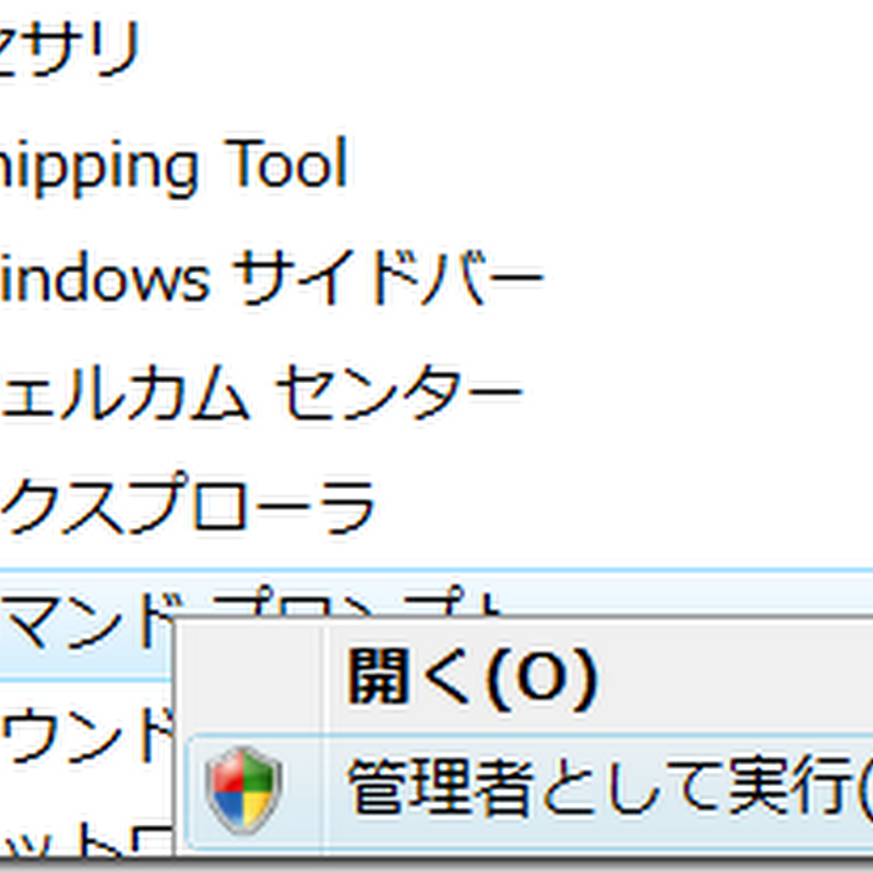 (1)コマンドプロンプトの上で右クリックし、「管理者として実行」を選択