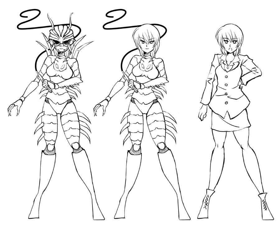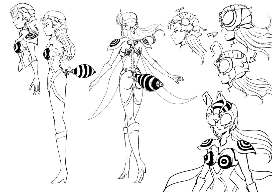 ハチ女の手下にされる感じで、パーツを装着されるイメージを描いてみたものです。