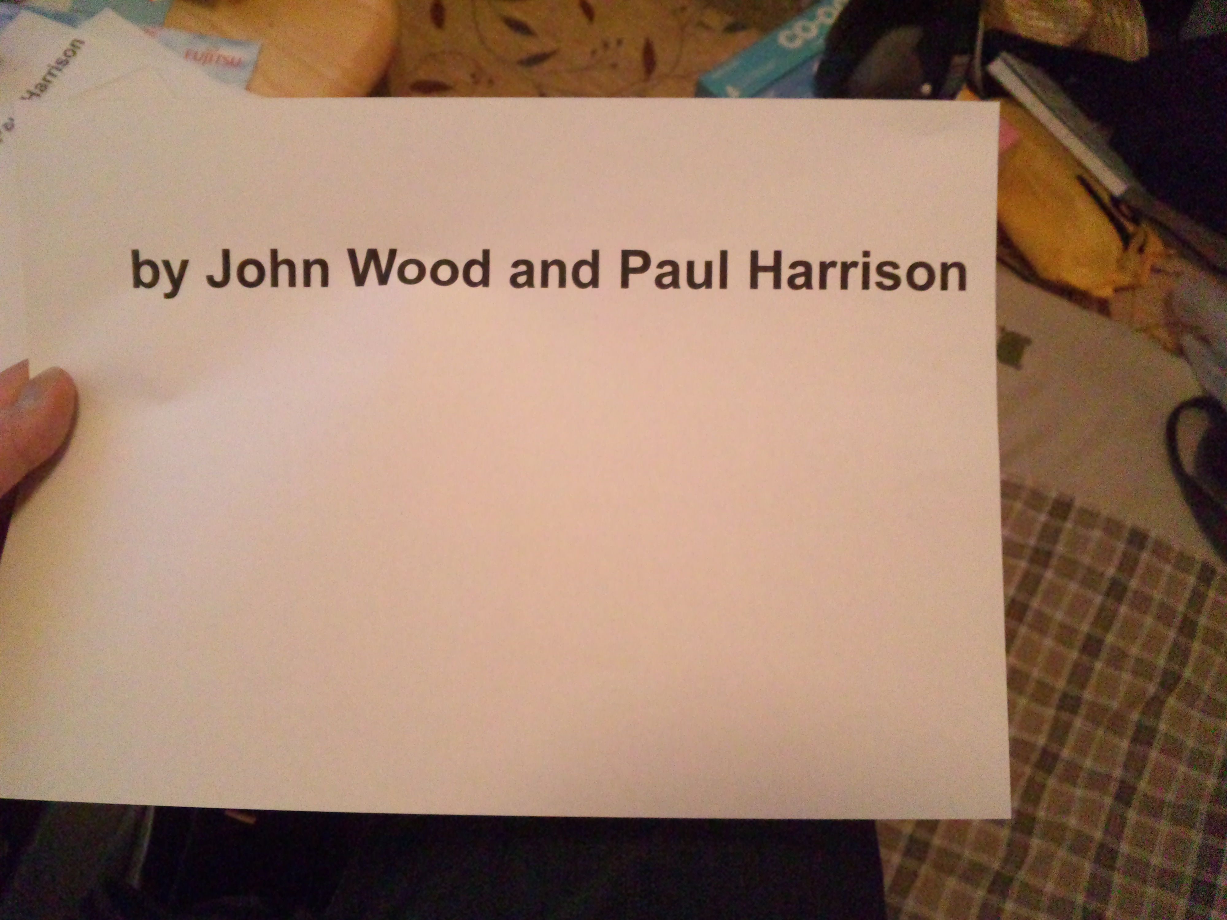 「by John Wood and Paul Harrison」と書かれた紙。