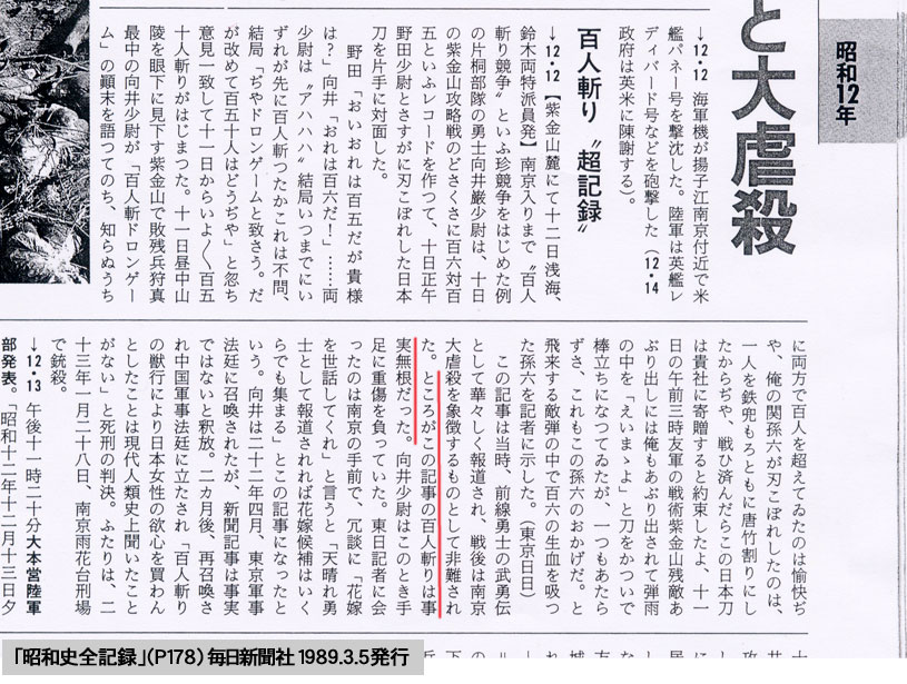 “百人斬り”は昭和12年、東京日日新聞(現毎日新聞)に掲載され、旧日本軍の元将校2人が