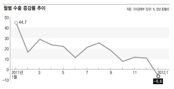 貿易収支が24ヶ月ぶりに赤字に転落した。 輸出増加率は27ヶ月ぶりにマイナスを記録した。 ヨーロッパ財政危機の継続と先進国の景気低迷に続き、新興国まで成長率が鈍化してきたためだ。 簡単に解ける問題ではなく輸出に頼ってきた韓国経済に大きな暗雲を垂らしている。