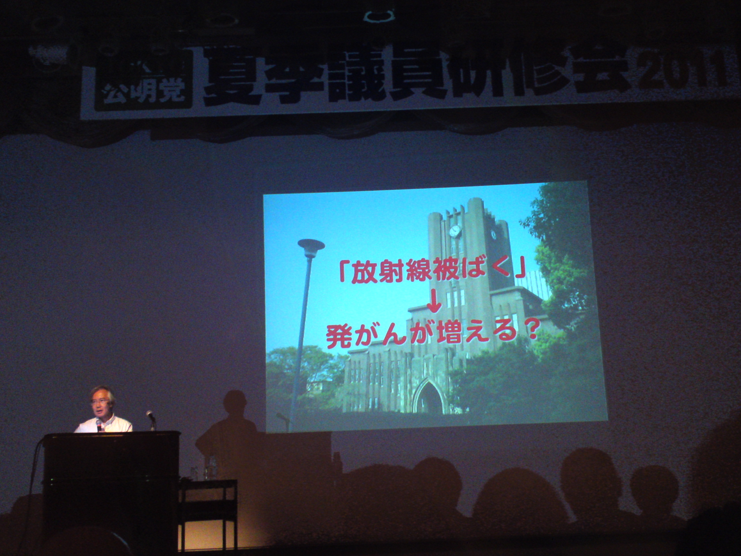 第1部は、東京大学附属病院の中川恵一准教授の講演で、放射線とがんとの関係について専門家の立場から、様々な論点から述べてくれました。