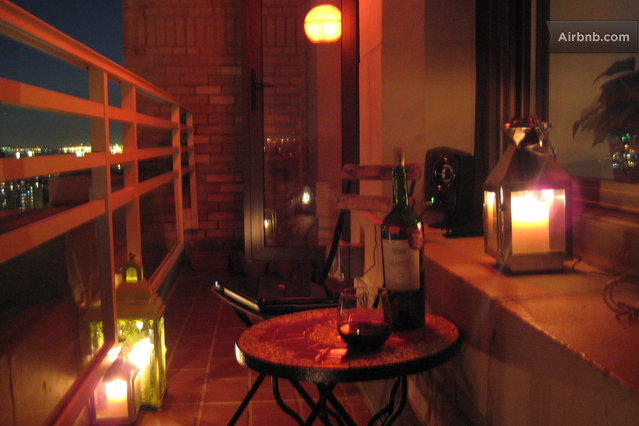 The bedroom provides breathtaking views of the Manhattan skyline (including the Empire State, Chrysler Building, Williamsburg Bridge) that shimmer by day and light up at night. The bedroom contains one double bed. Large air bed is available in the sitting room to comfortably sleep two more.