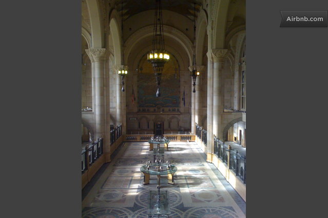 Located in the historic Williamsburg Savings Bank building, the apartment is 934 square feet (87 meters squared), has 12 foot ceilings with an open plan kitchen/dining room/living room with separate bedroom. The bathroom has both a walk-in shower and separate full tub. Cherrywood floors and lavastone countertops add elegant touches to this spacious home. The apartment is fully furnished and a closet can be provided if need be.