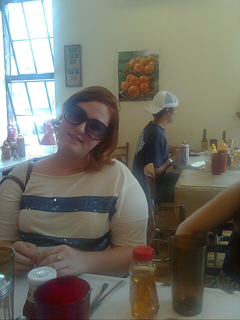 On Monday (June 14 already!), I took the day off to hang out with Julia. I introduced her to the B-list talent and the D-list production values that make Tales from the Darkside such a success. After a few episodes, we motivate ourselves enough to put on shoes, than amble out into the bright sunlight to pick up Julia's friend Erica. I took the girls to the local Brooklyn too-twee-for-school joint, Pies n' Thighs, which has one of the best chicken biscuits possible (caveat: in a land without Chick-fil-a).