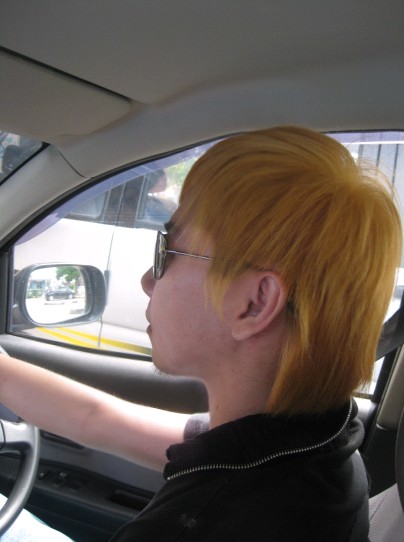 I will help him dye to brown/dark color after Chinese New year. So he won't look like this forever, coz he want go to work de =)