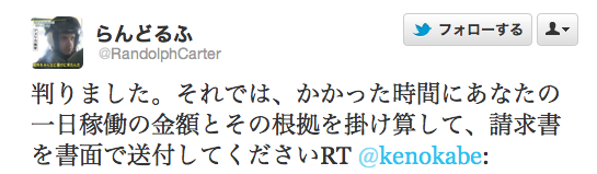 かかった時間に一日稼働の金額とその根拠を掛け算して、請求書を書面で送付するよう要請があったので、送付先の住所氏名電話番号を要求したところ、