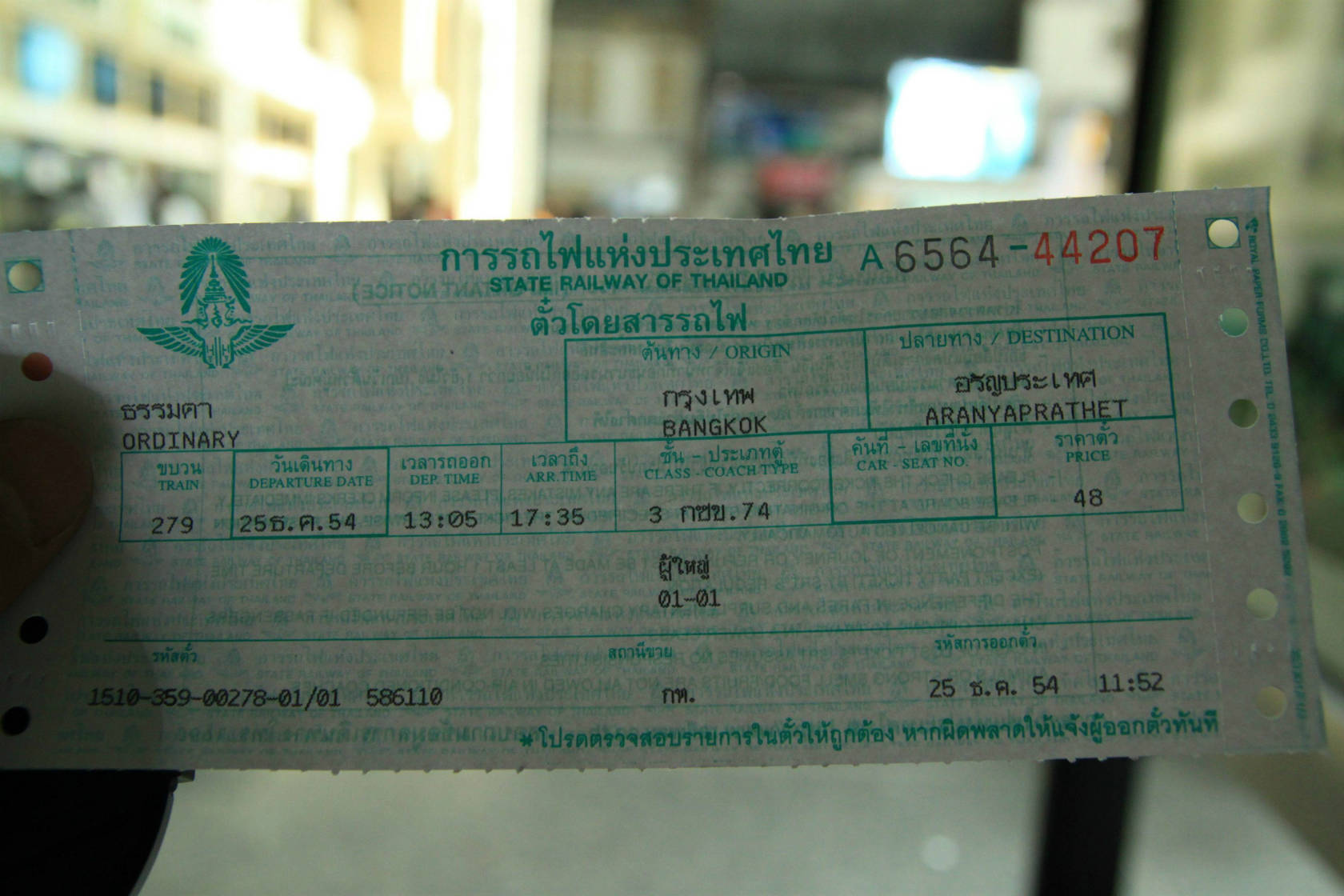 無事自転車も復活し、タイとカンボジアの国境の町アランヤプラテート行きの切符をゲット☆