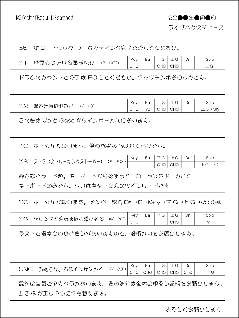 他人にゆだねる部分が出てくるわけだから、PA屋さんと主催者側に情報が必要になる。