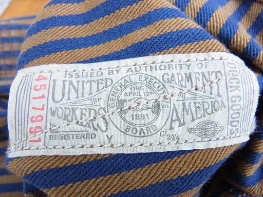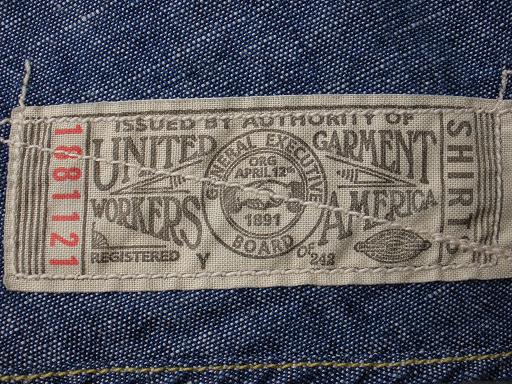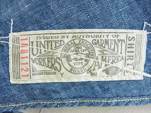 古いシャツに見られるようにバックヨークは狭めです。左裾の裏側にはユニオンチケットが付属。