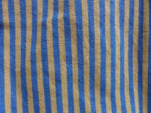 マテリアルはコットン100%のインディゴ×ブラウンのストライプ生地を使用しております。