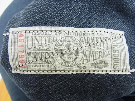 後ろポケットの中にはユニオンチケット。UNION SPECIALのネームも御確認下さい。