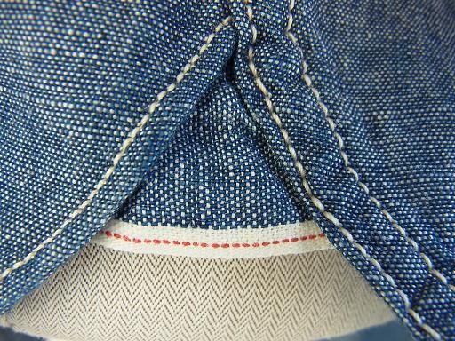 アウトシームやインシームは3本針の環縫いでヘビーデューティーな仕様。