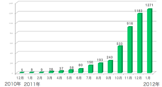 Androidに感染するウイルスのパターンファイル登録数の経月推移