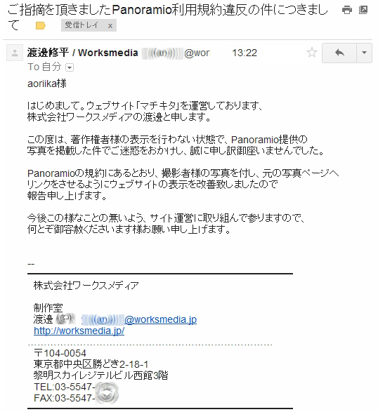 株式会社ワークスメディアへの返信。