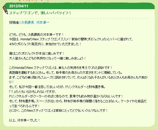 ■Honda|ステップ ワゴン|ススメ!家族の冒険プロジェクト