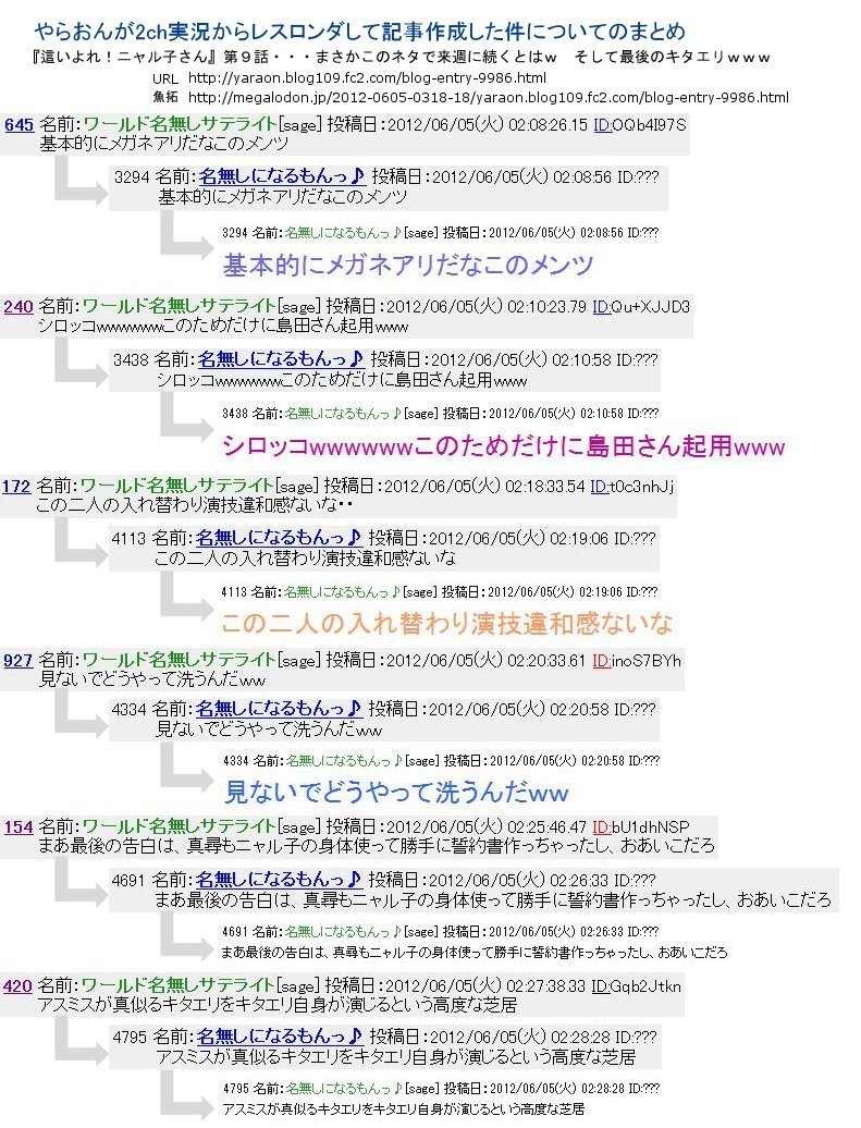 2chTX実況→チャットちゃんねる→やらおんと、レスのロンダリングが行われた。