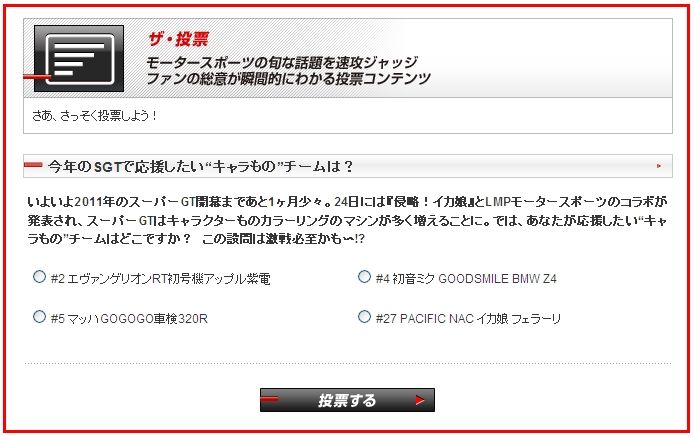 モ-タースポーツサイトで人気投票やってるのでゲソ!お、結構善戦してるな!