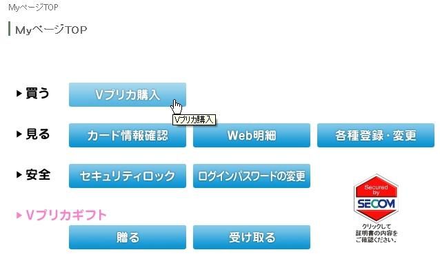 Vプリカ購入のボタンを押します