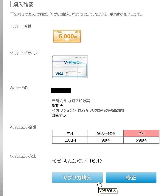 確認画面になるのでしっかり確認してからVプリカ購入ボタンを押します