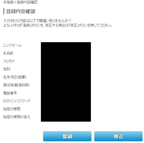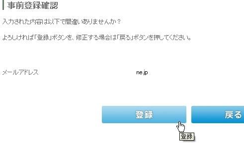 再度確認して登録ボタンを押すと