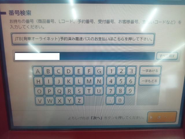 先ほどの番号を入力、スペースは開ける必要ありません
