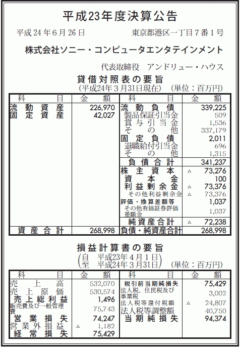 この時点でゲーム事業が既にSCEから一部移管されてるってのが分かるやん。