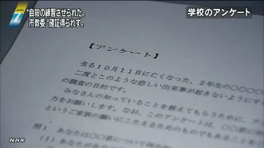 ÂçÄÅ»ÔÎ©Ãæ³ØÆóǯÃË»ÒÀ¸Å̤μ«»¦¸å¤Ë³Ø¹»¤¬¼Â»Ü¤·¤¿Ä´ºº¤Ç¡¢¼«»¦¤Ë¤Ä¤Ê¤¬¤ë²ÄǽÀ¤Î¤¢¤ë¤¤¤¸¤á¹Ô°Ù¤Ë¤Ä¤¤¤ÆÂ¿¤¯¤Î¾ðÊ󤬴󤻤é¤ì¤Æ¤¤¤¿¤³¤È¤¬È¯³Ð¤·¤¿ÌäÂê¡£»Ô¶µ°é°Ñ°÷²ñ¤Ï»ÍÆü¤Î²ñ¸«¤Ç¡Ö¼«»¦¤ÎÎý½¬¤ò¶¯Íפ·¤¿¤Èʹ¤¤¤¿¡×¤È¤Î²óÅú¤¬¤¢¤Ã¤¿¤³¤È¤òǧ¤á¤¿¤¬¡ÖľÀܤϸ«¤Æ¤¤¤Ê¤¤¡×¤È»ö¼Â¤ÈȽÃǤǤ¤Ê¤¤¤¿¤á¸øÉ½¤ò¹µ¤¨¤¿¤È¼áÌÀ¤·¤¿¡£
