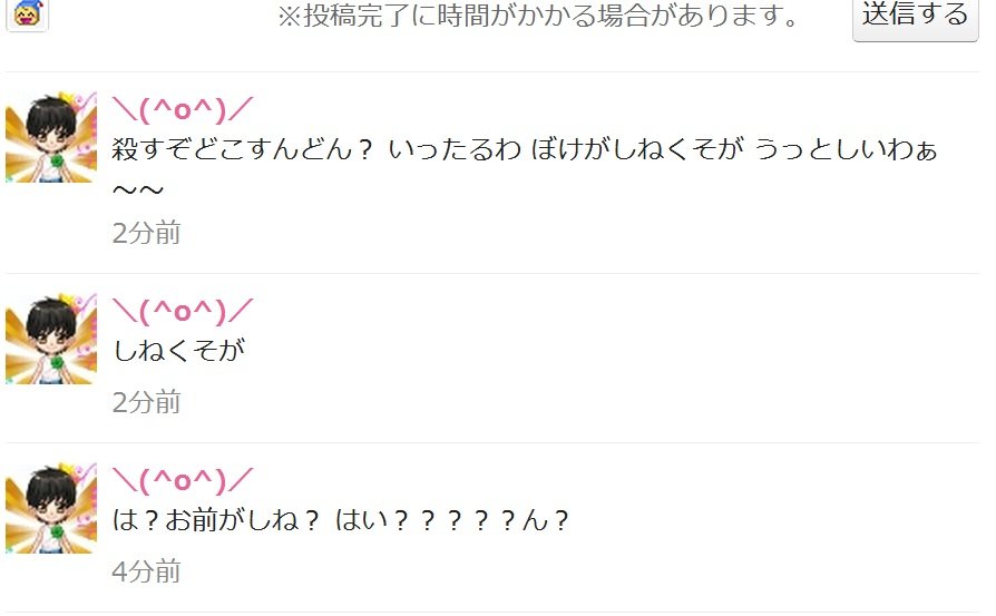 「殺すぞどこすんどん? いったるわ ぼけがしねくそが うっとしいわぁ~~」