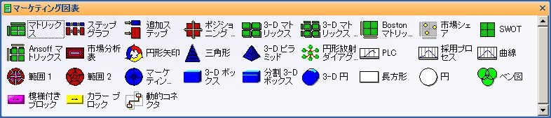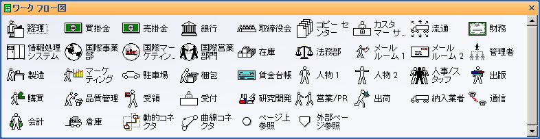 しかし、作業を進めていると図形ウィンドウに最初にロードされたステンシル以外の物を利用したくなるのですが、目的の物をさがすのがなかなかやっかいです。