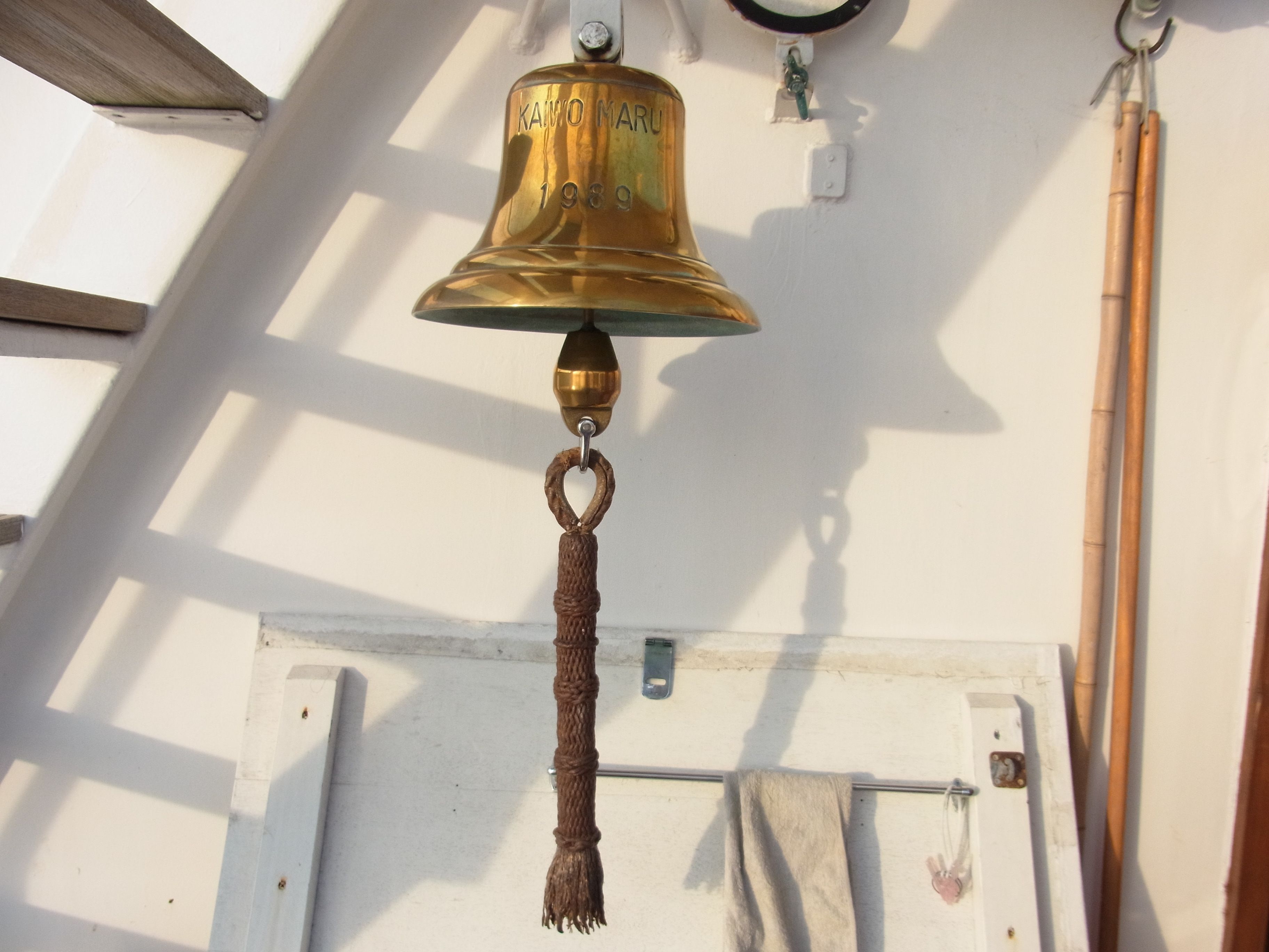 これはタイムベルといってその昔時計が高級品だったときに船内に時間を