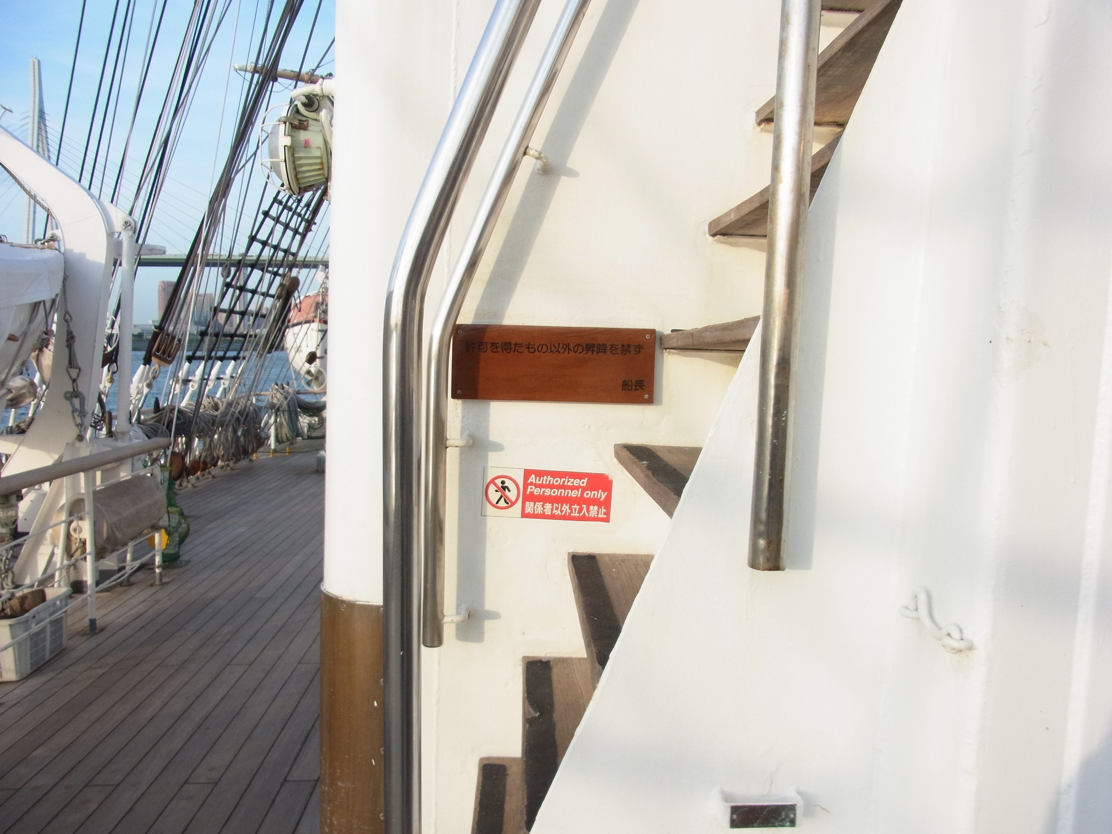 船内で一番急な階段 船長の許可がないと上り下りできません