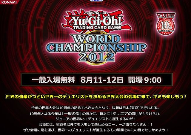 遊戯王の世界大会10周年の記念大会となる「Yu-Gi-Oh! World Championship 2012」の決勝戦など対戦シーンを中心に放送!