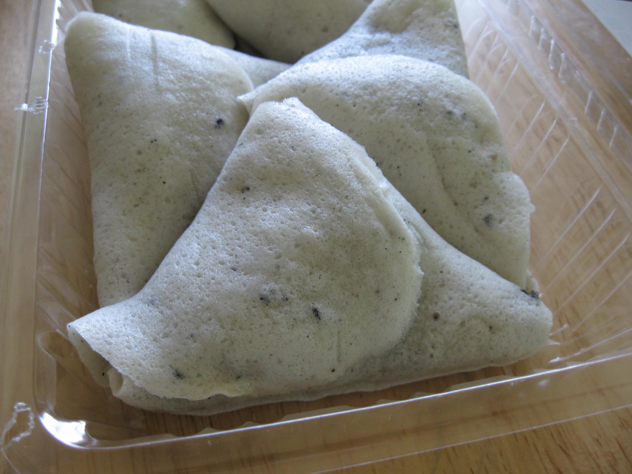 粉をクレープのように焼いて、こしあんを包んだものだ。