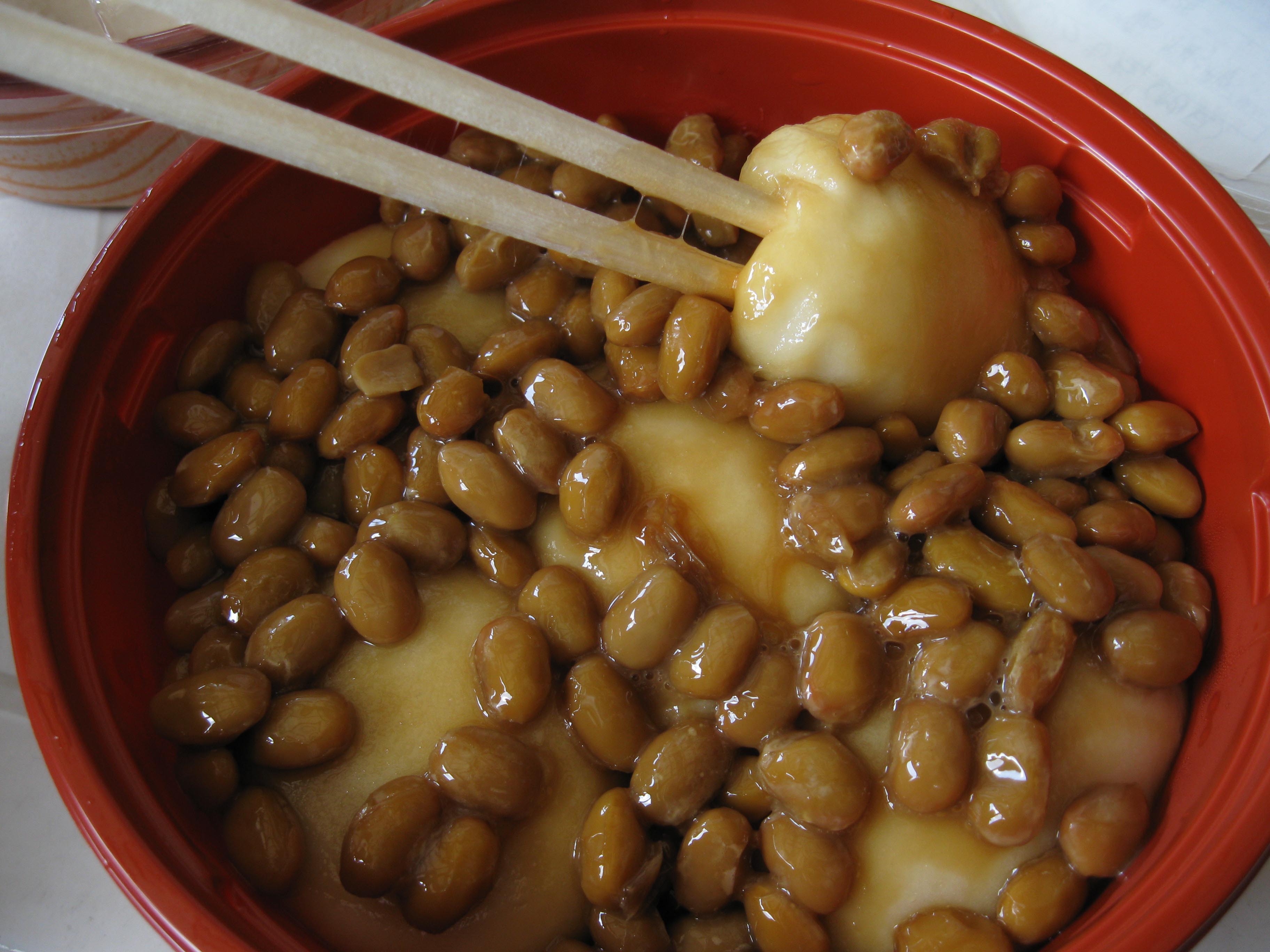 もちにぴっとりと寄りそう納豆よ。