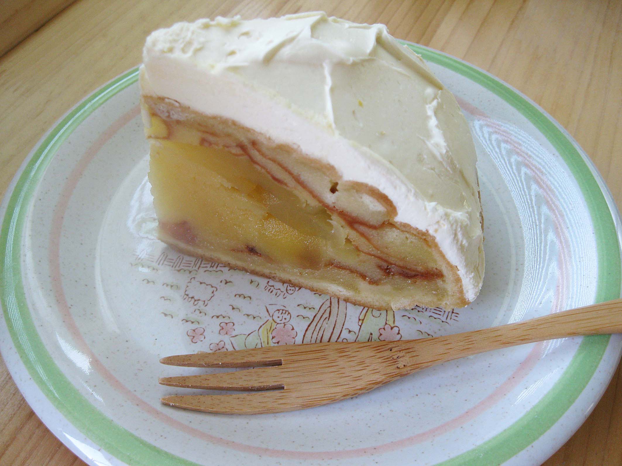 リンゴのいい香りとそのシロップが上に下によく染みたスポンジ。