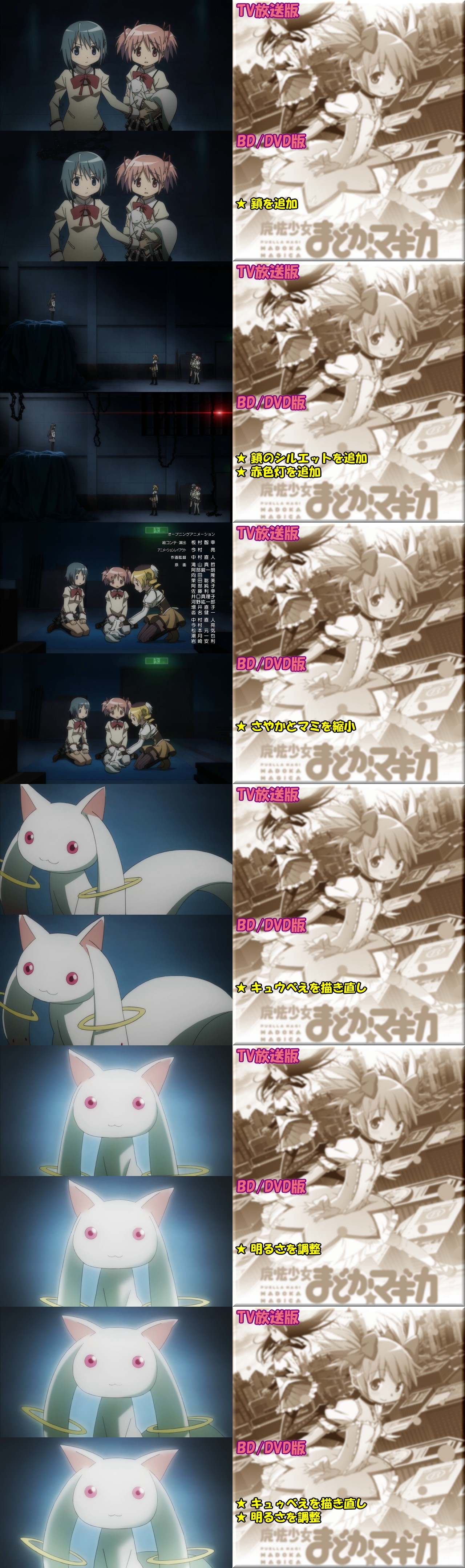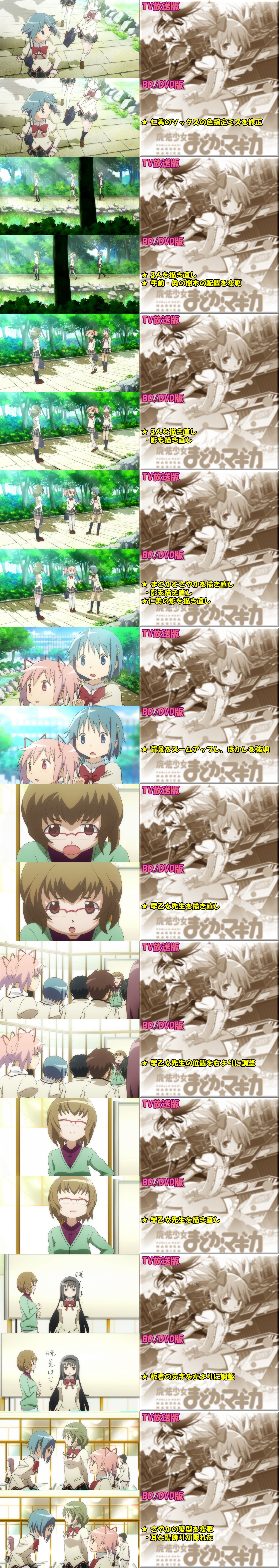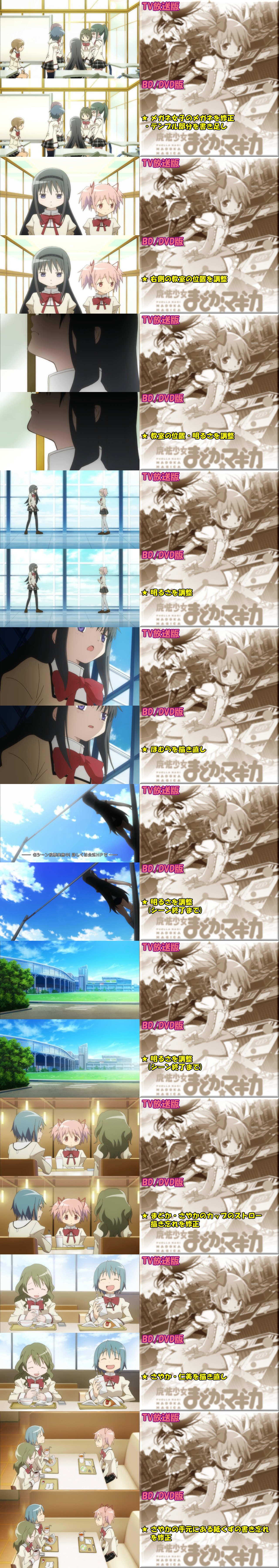 OPに引き続き、第01話のTV放映版とBD/DVD版の修正・変更点をまとめてみやしたー。