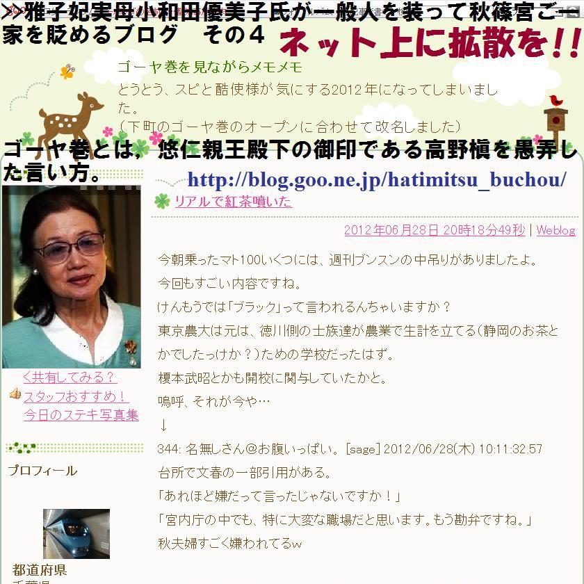 さあ ゴーヤ糞ブログは愛号のリレーネタを取り上げるでしょーかまたあれか?お得意の秋篠宮派の陰謀説を唱えるか!?ゆーしゅーでびじんのとしのみやさまをねたんだあきしのみやはのものがひれつなてをつかってーーー