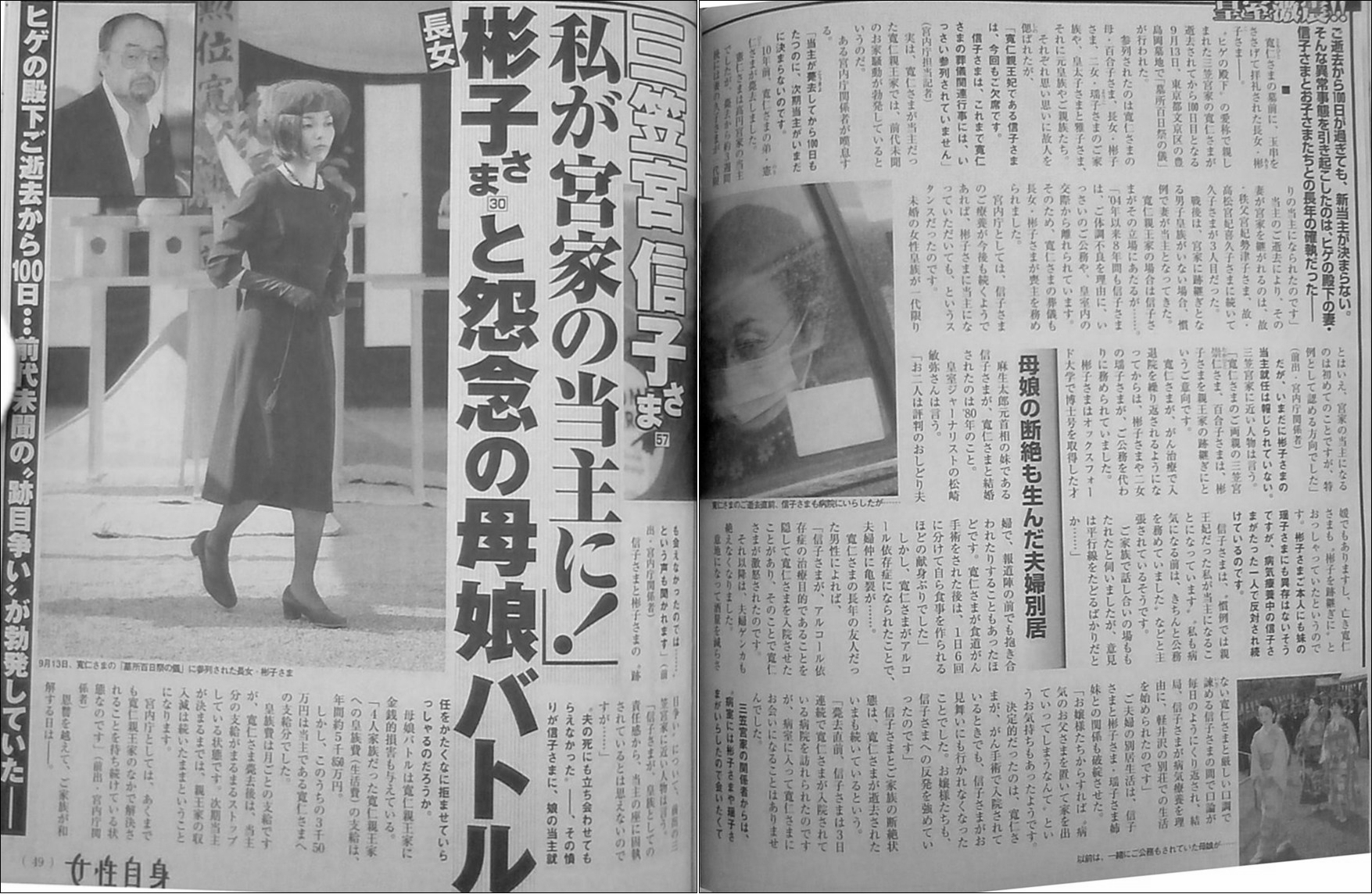 女性自身(2012/10/02)三笠宮信子さま「私が宮家の党首に!」彬子さまと怨念の母娘バトル