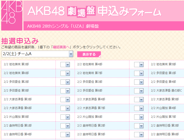 メンバーによって、○日の第○部に開催と複数の指定があり、