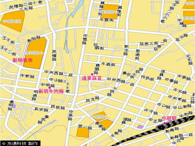 新明夜市では「温記豆花」の豆花、「簡師傳麻辣臭豆腐」の麻辣臭豆腐などが有名ですが、少し離れた場所に台北にも数店舗支店のある牛肉麺の有名店「中壢新明牛肉麺」本店がありますので興味ある方はチェックしておいてください。(地図参照)