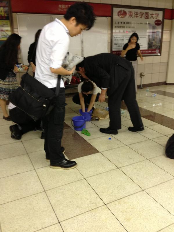 終電の丸の内線、私の斜め前50センチくらいのとこで急に缶が爆発、中身は漂白剤?